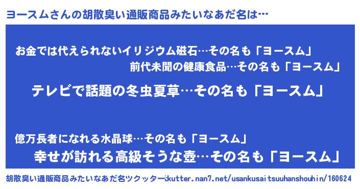 | ヒーロー風カッコイイあだ名 | 『ウルトラ戦士ヨースム』『ネオヨースム』 |