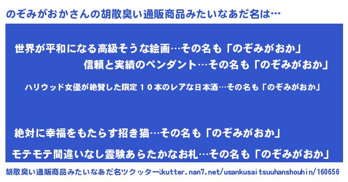| 意味不明あだ名 | 『住所不定無職のぞみがおか(59歳)』 |