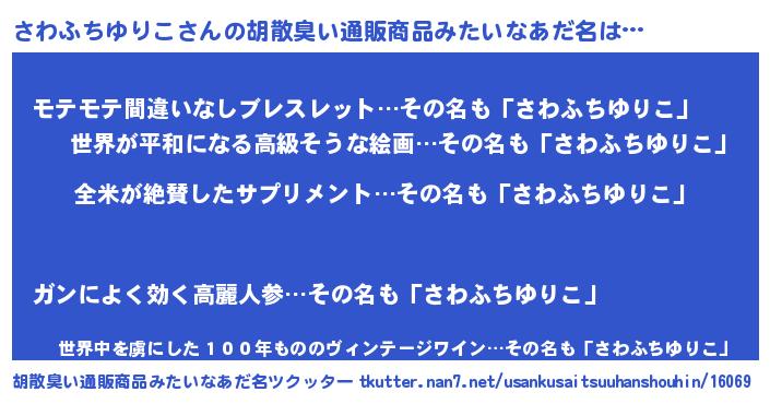 | ポケモン風あだ名 | 『メロサッワ』『ヒサワフチユリコ』 |