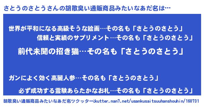| 意味不明あだ名 | 『永久保存さとうのさとう』 |