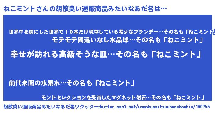 | 意味不明あだ名 | 『ねこミントフォーエバー』 |