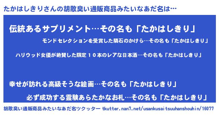 | 意味不明あだ名 | 『住所不定無職たかはしきり(50歳)』 |