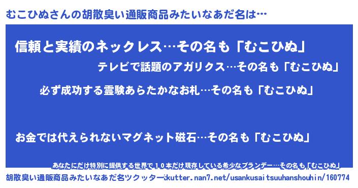 | 欧米人風あだ名 | 『アンジェラ・むこひぬ』 |
