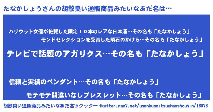 | 恥ずかしいあだ名 | 『タナカショウデラックス』『たなちん』 |