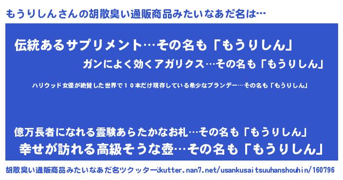 | 意味不明あだ名 | 『住所不定無職もうりしん(91歳)』 |