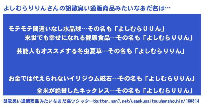 | 意味不明あだ名 | 『自称よしむらりりん』 |