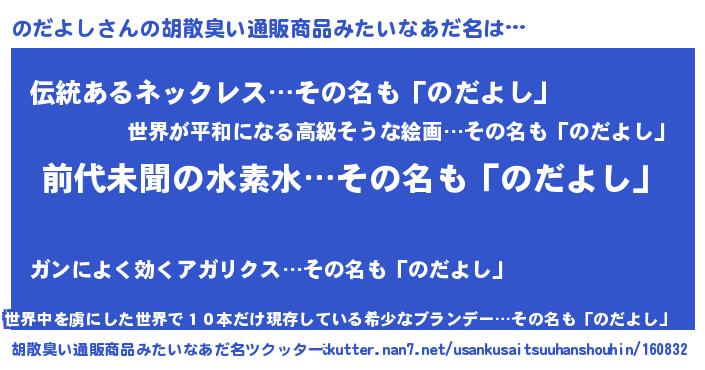 | ピコ太郎風あだ名 | 『ピコノ郎』『ノダ史郎』『ピノ三郎』 |