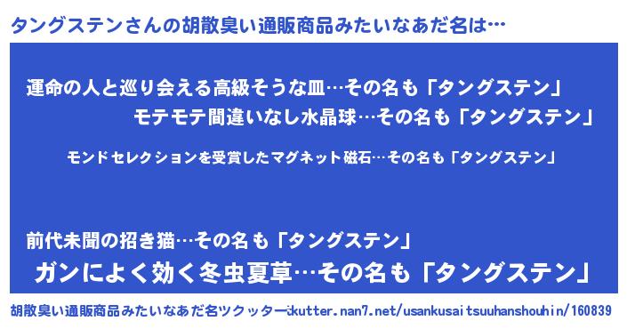 | ことわざ | 泣きっ面に蜂『泣きっ面にタングステン』 |