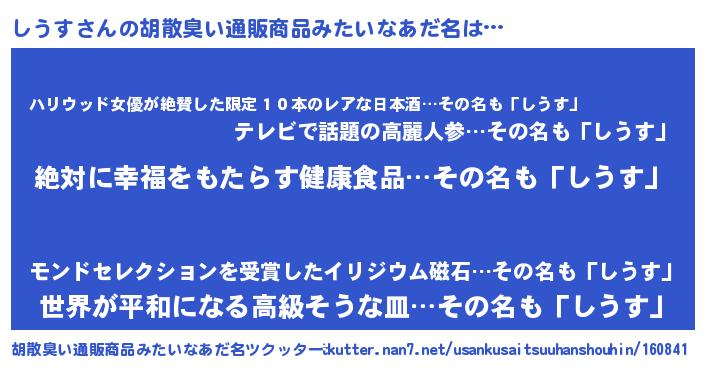 | ヘコむあだ名 | 『しうす(笑)』『つくし』『しうにー』 |