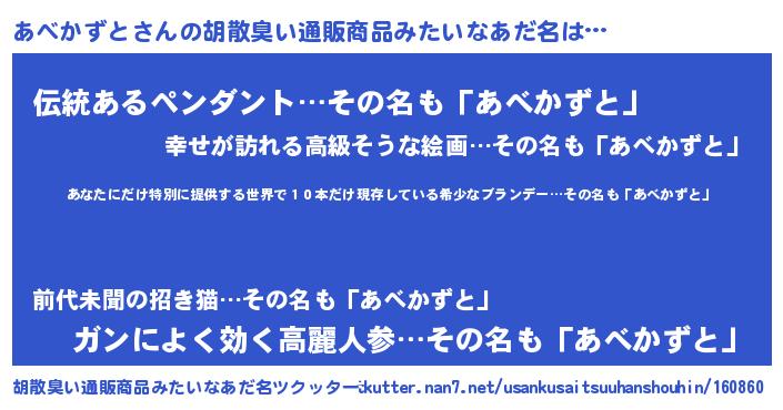 | 恥ずかしいあだ名 | 『アベリンリン』『アベカズトデラックス』 |