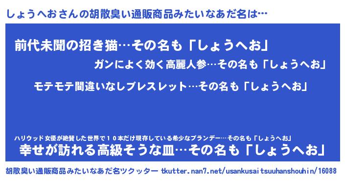 | 意味不明あだ名 | 『ペロリンしょうへお』『自称しょうへお』 |