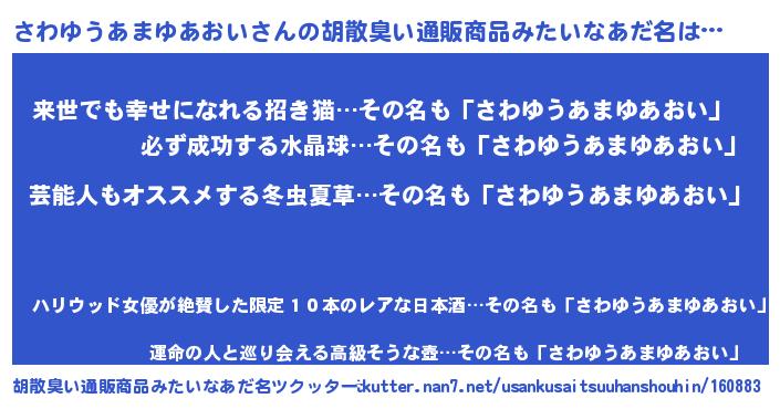 | ヘコむあだ名 | 『さわゆうあまゆあおい(震え声)』『さわを』 |