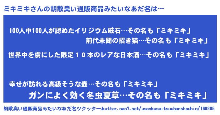 | ヘコむあだ名 | 『ミキミキ(苦笑)』『牛乳』 |