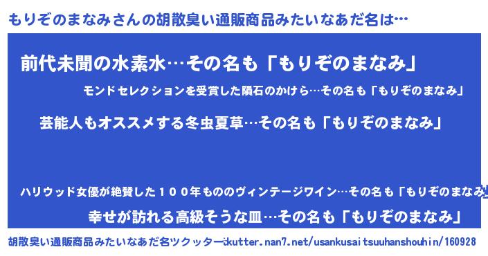 | ヘコむあだ名 | 『もりぞのまなみ(遠い目)』『レバニラ』 |