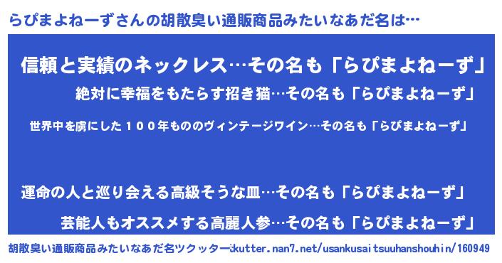 | ヘコむあだ名 | 『らぴお』『らぴまよねーず(苦笑)』 |