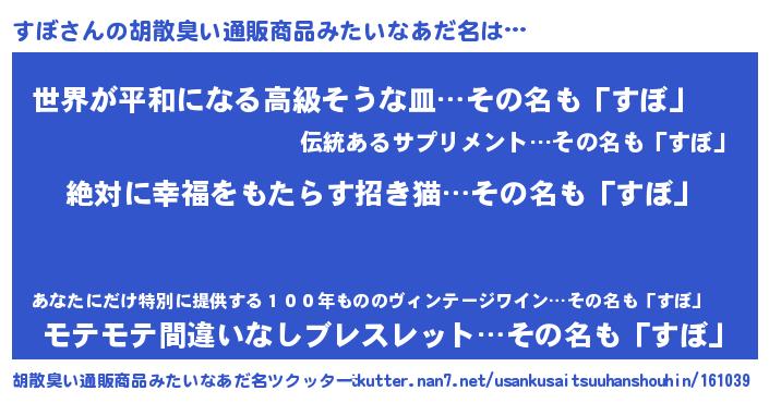 | ヒーロー風カッコイイあだ名 | 『ネオスボ』『ウルトラすぼマン』 |