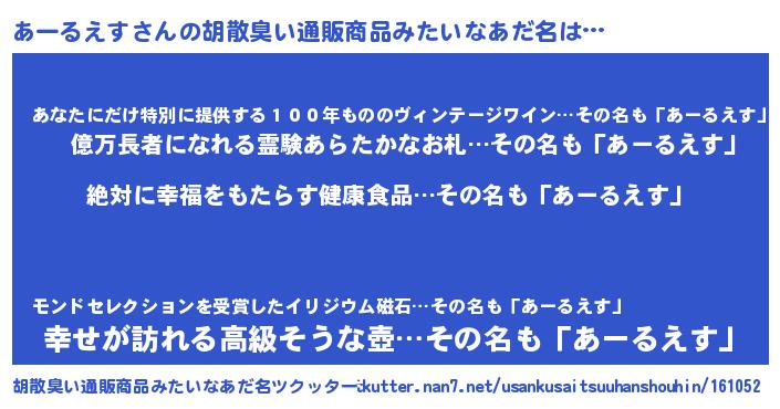 | 男性向けラノベタイトル風あだ名 | 『あーるえすという概念が存在しない退屈な世界 』 |