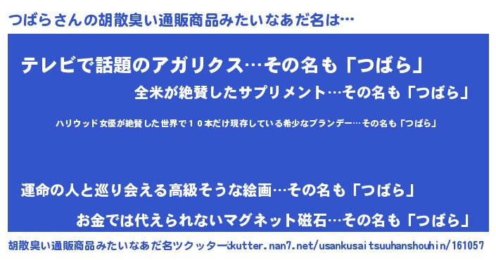 | 男性向けラノベタイトル風あだ名 | 『ツバラスレイヤー』『緋弾のツバラ』 |