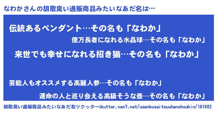 | ヘコむあだ名 | 『なわか(小並感)』『なわっぺ』 |