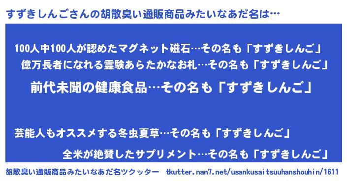 | ヘコむあだ名 | 『すずきしんご(笑)』『すずを』 |