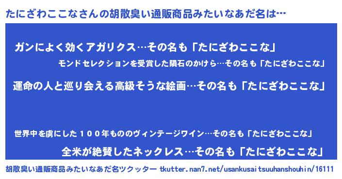 | 男性向けラノベタイトル風あだ名 | 『たにざわここなに滅ぼされるだけの簡単なお仕事です』 |