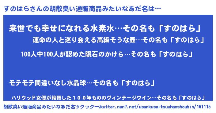 | ヘコむあだ名 | 『すのはら(苦笑)』『なまこ酢』 |