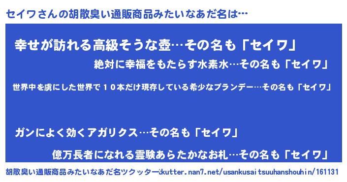 | 意味不明あだ名 | 『住所不定無職セイワ(81歳)』『自称セイワ』 |