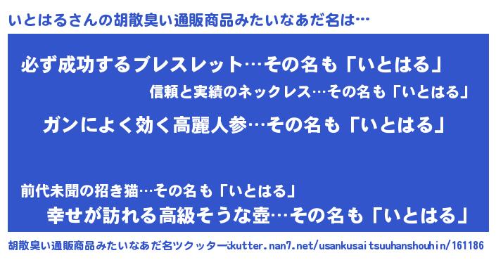 | 恥ずかしいあだ名 | 『イトハルデラックス』『いとっちょ』 |