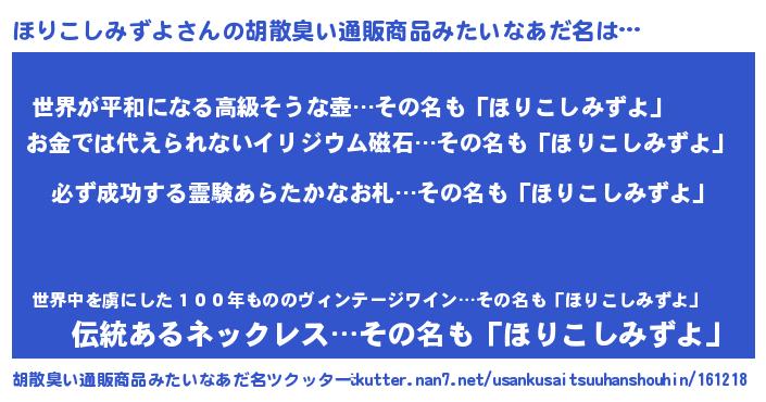 | 男性向けラノベタイトル風あだ名 | 『ほりこしみずよの憂鬱』 |