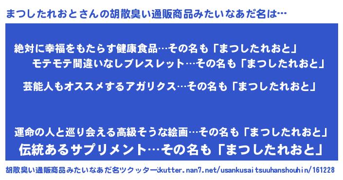 | ヘコむあだ名 | 『まつしたれおと(笑)』『まつっぺ』 |