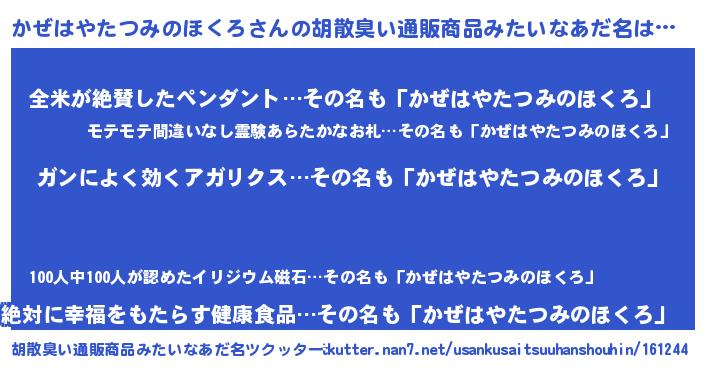 | 恥ずかしいあだ名 | 『カゼハヤタツミノホクロデラックス』 |
