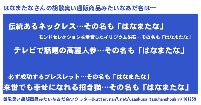 | 意味不明あだ名 | 『自称はなまたな』『永久保存はなまたな』 |