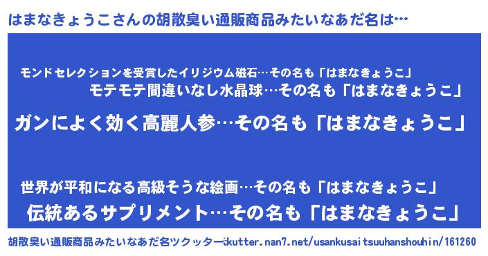 | 意味不明あだ名 | 『自称はまなきょうこ』 |