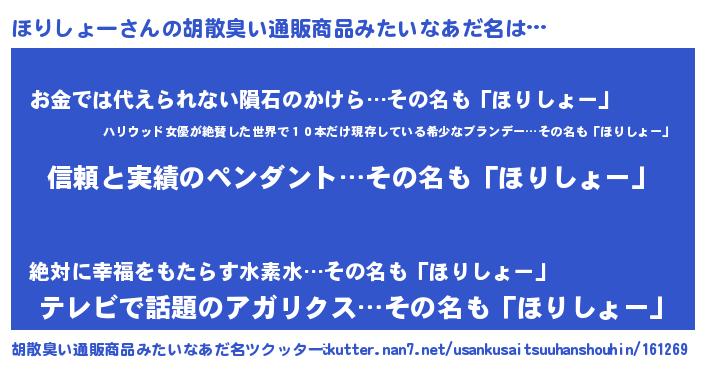 | 男性向けラノベタイトル風あだ名 | 『ホリショースレイヤー』 |