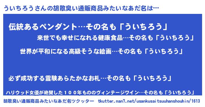 | 肩書あだ名 | 『ういちろう総理大臣』『ういちろう大佐』 |