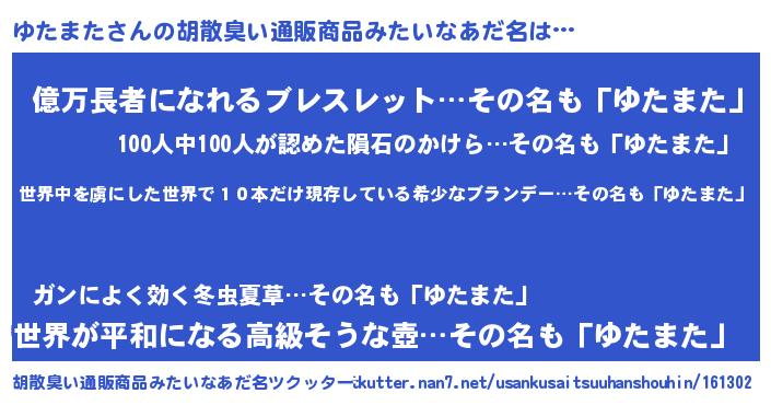 | ヘコむあだ名 | 『ゆたっふぃ~』『なまこ酢』 |