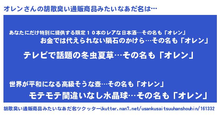 | 意味不明あだ名 | 『自称オレン』『つくし科オレン属』 |