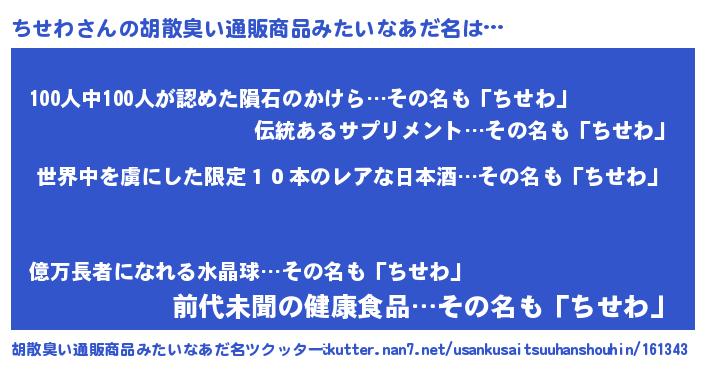 | 意味不明あだ名 | 『住所不定無職ちせわ(14歳)』 |