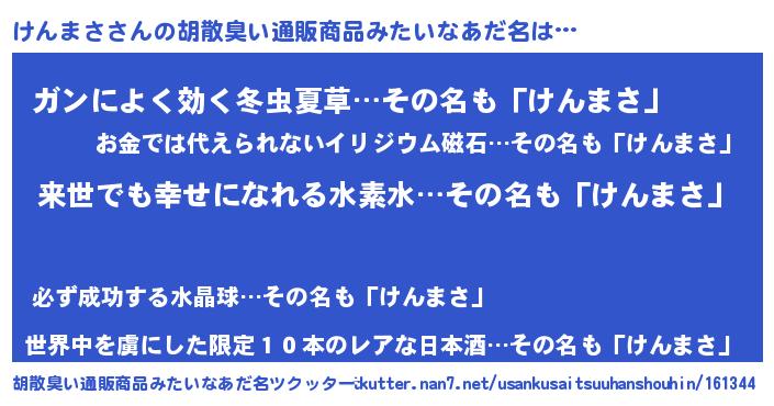 | 意味不明あだ名 | 『永久保存けんまさ』『自称けんまさ』 |