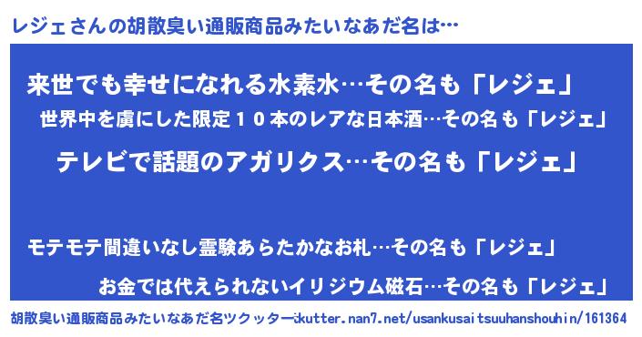 | ヘコむあだ名 | 『レジェ(爆)』『レジもー』 |