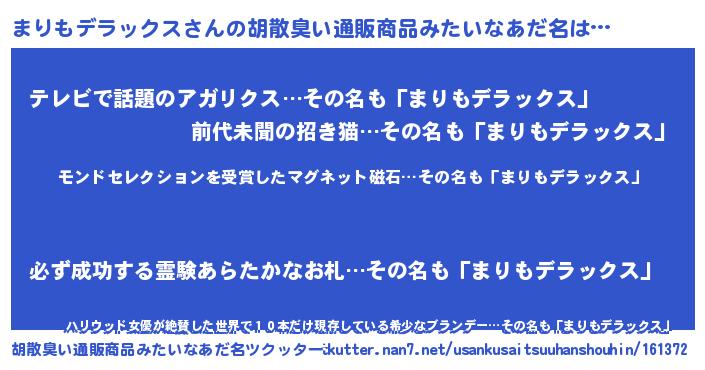 | ヒーロー風カッコイイあだ名 | 『天空の使者まりもデラックス』 |
