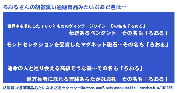 | ヘコむあだ名 | 『ろおふぇ~』『ろおっ子』 |