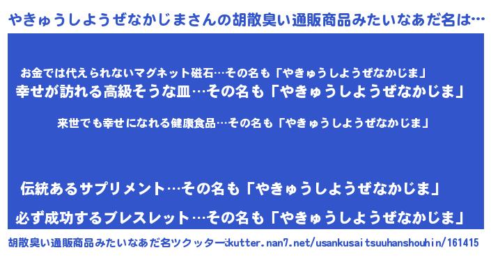 | ヒーロー風カッコイイあだ名 | 『ネオヤキュウシヨウゼナカジマ』 |