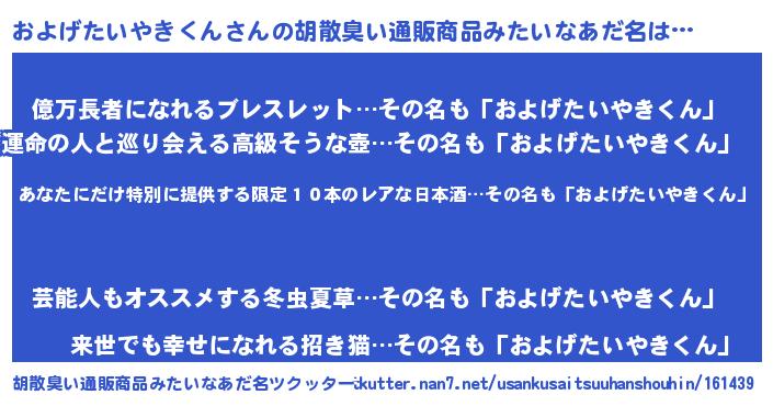 およげたいやきくんさんの胡散臭い通販商品みたいなあだ名をツクッター!