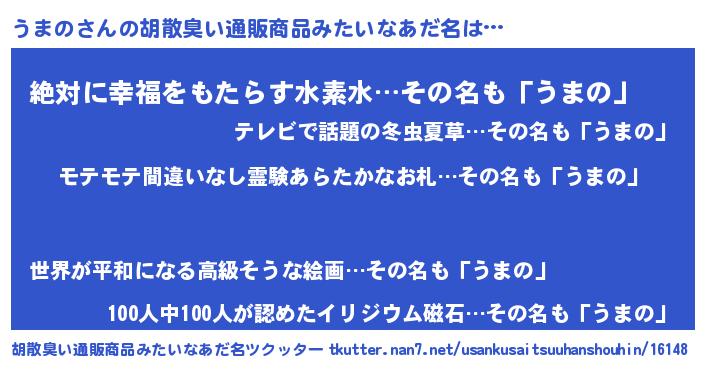 | ヘコむあだ名 | 『うまっふぃ~』『うまの(笑)』 |