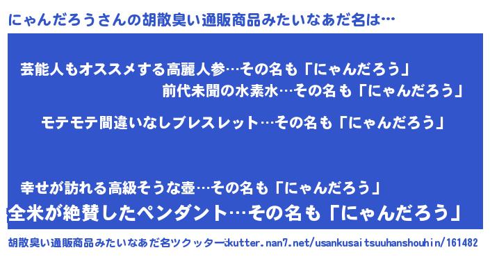 | 男性向けラノベタイトル風あだ名 | 『はたらくにゃんだろうさま!』 |