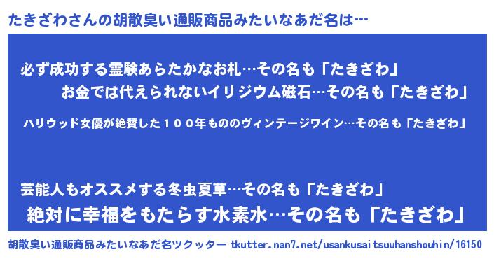 | 意味不明あだ名 | 『住所不定無職たきざわ(7歳)』 |