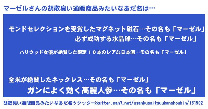 | 料理風あだ名 | 『マーゼルのカルパッチョ風』 |