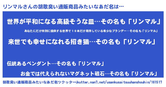 | 男性向けラノベタイトル風あだ名 | 『リンマルという概念が存在しない退屈な世界 』 |