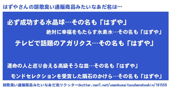 | ヘコむあだ名 | 『はずもー』『はずや(笑)』 |